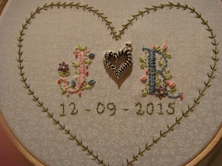 My first finish is a keepsake pillow for a wedding in September.