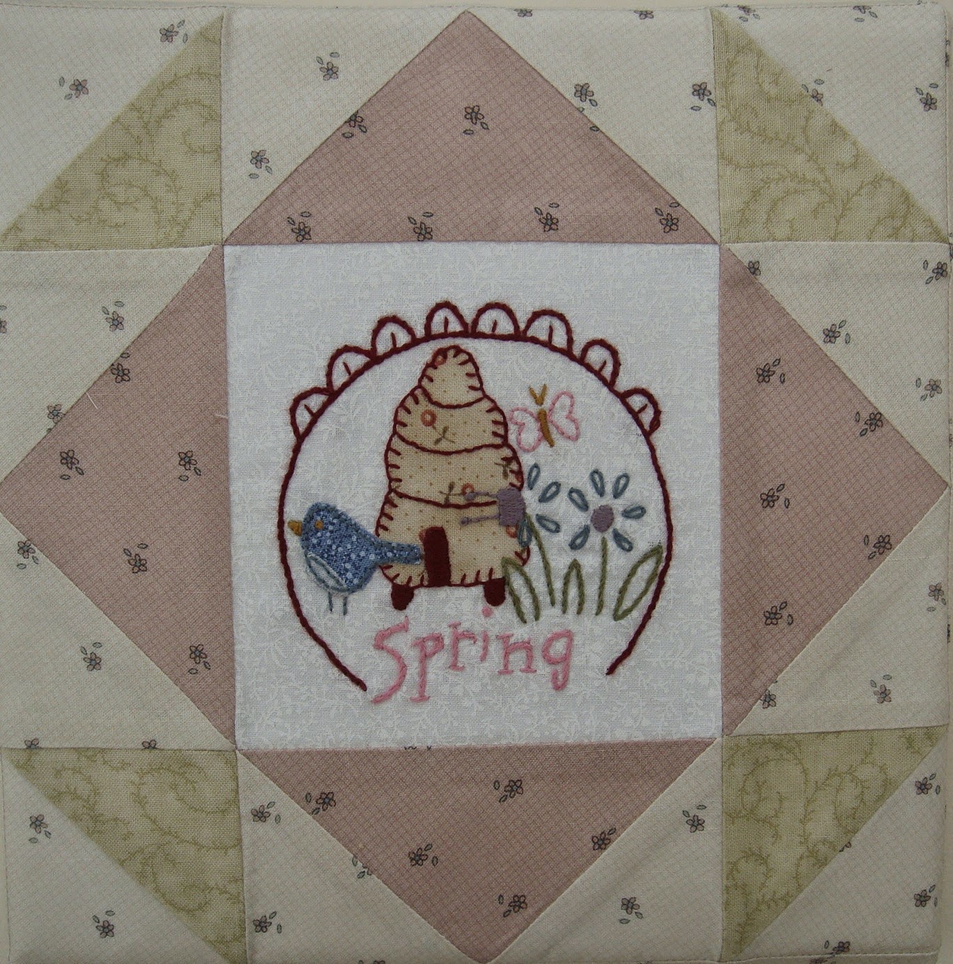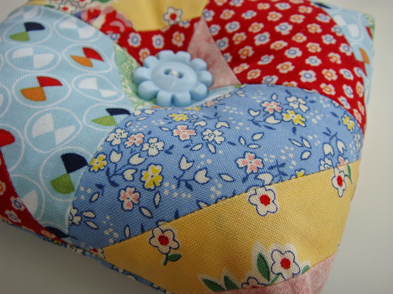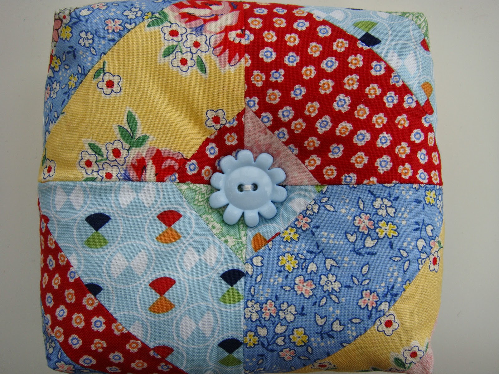 My next finish is a cute pincushion made from a tutorial by Lori Holt.