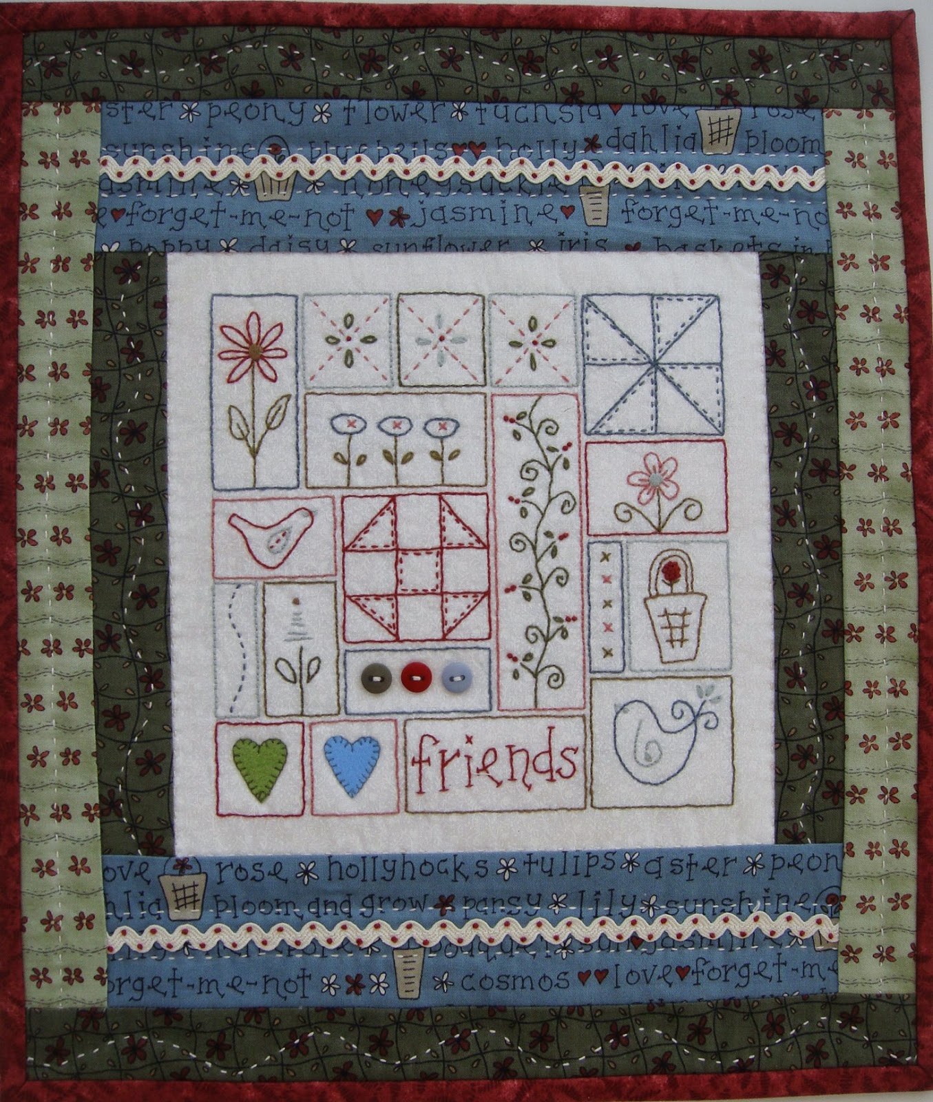 My second finish for 2015 is another Gail Pan design. Another lovely wall hanging that appeared in Homespun magazine.