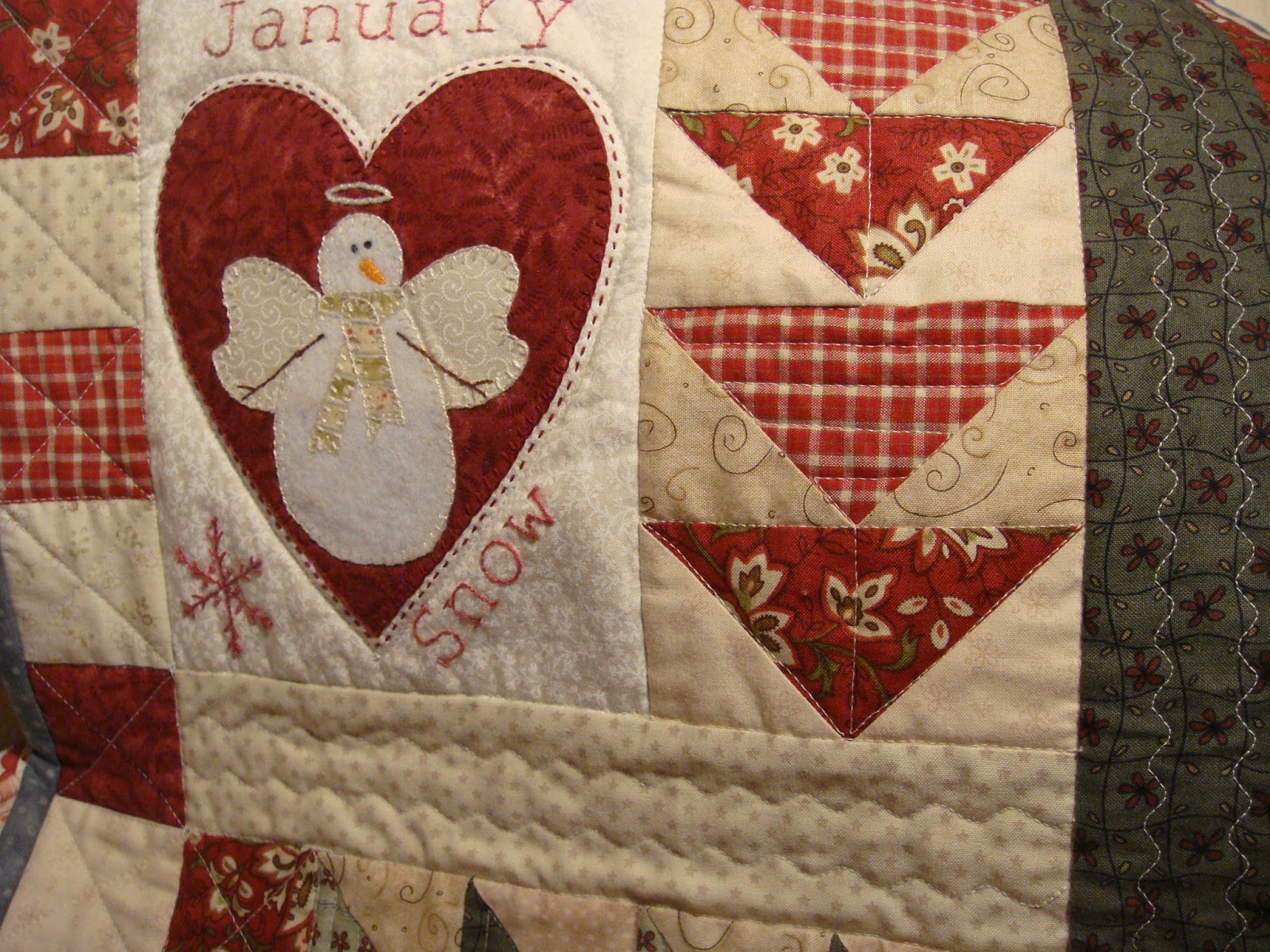 My first finish this month is my Snow Happy Heart Quilt! I am so excited to have it finished!!