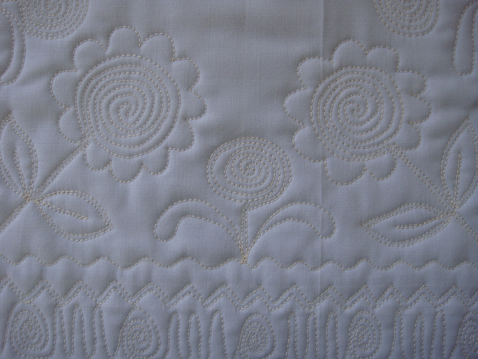 This month I finished my little wool quilt project. I used pebbling in the background to make the circle stand proud and I am very pleased with the results.