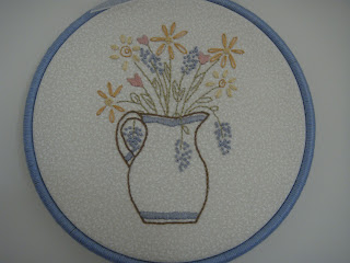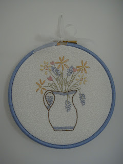 As well as several ongoing projects I am working on, I finished a little embroidered hoop as a gift.